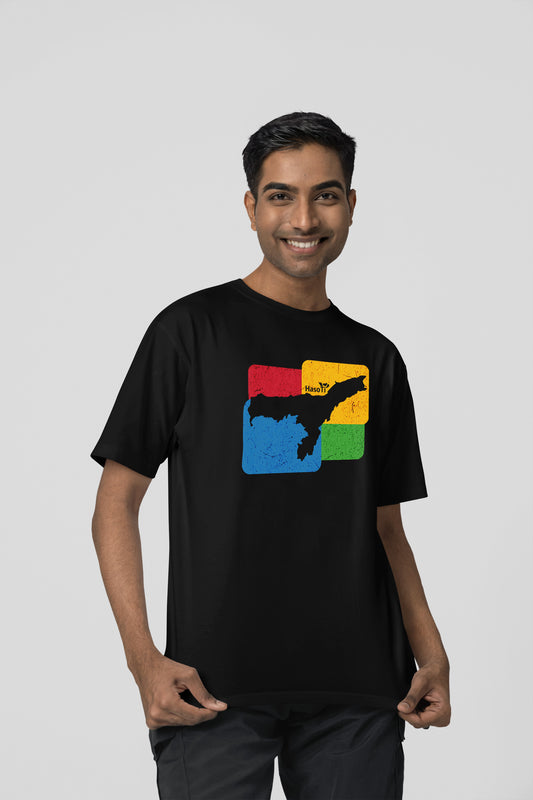 Assam Map | Assamese graphic printed t shirt | Regular | Black | Men