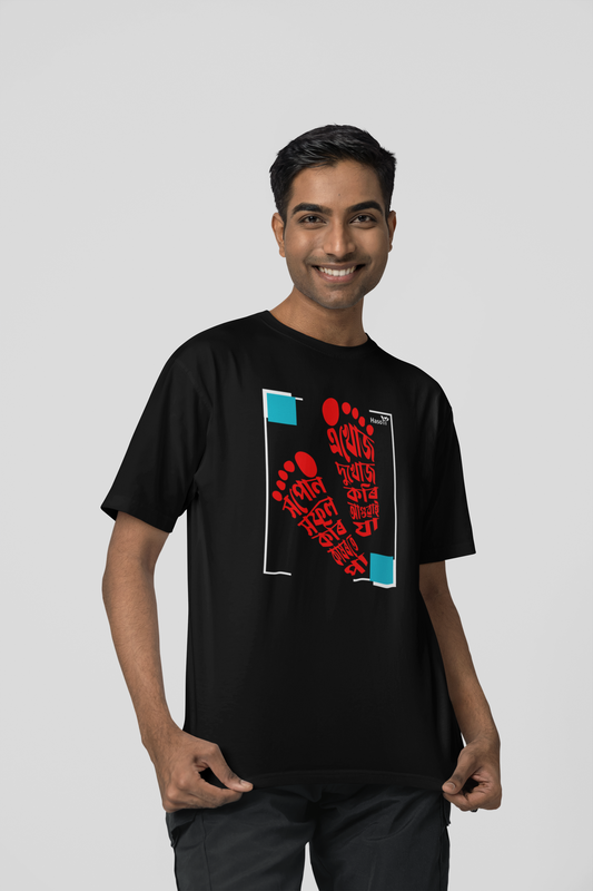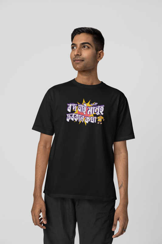 Bogitora Ulai Dekha Diya | Assamese graphic printed t shirt | Oversized | Black | Men