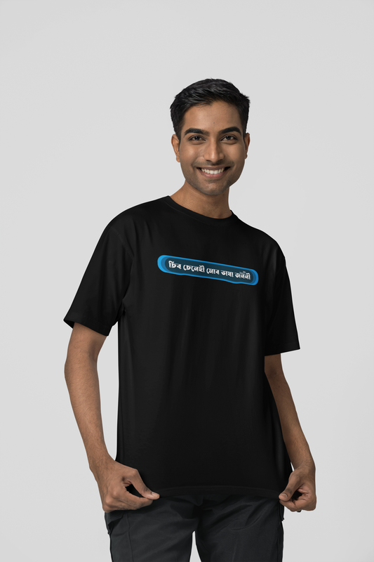 Siro Senehi Mur Bhakha Jononi | Assamese graphic printed t shirt | Regular | Black | Men