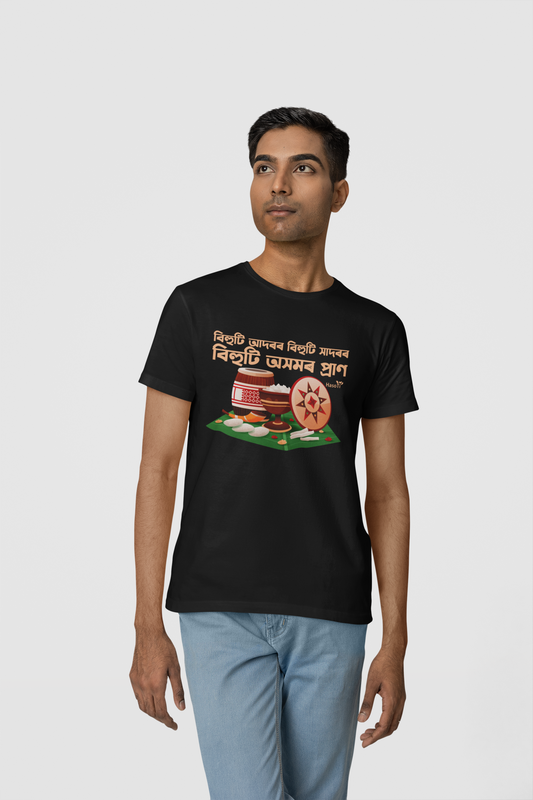 Bihu Main | Assamese graphic printed t shirt | Regular | Black | Men