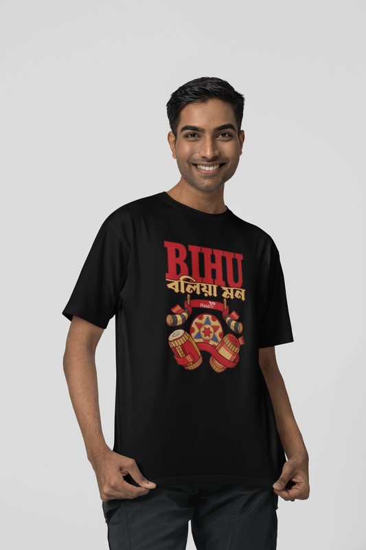 Bihu Boliya Mon | Assamese graphic printed t shirt | Regular | Black | Men