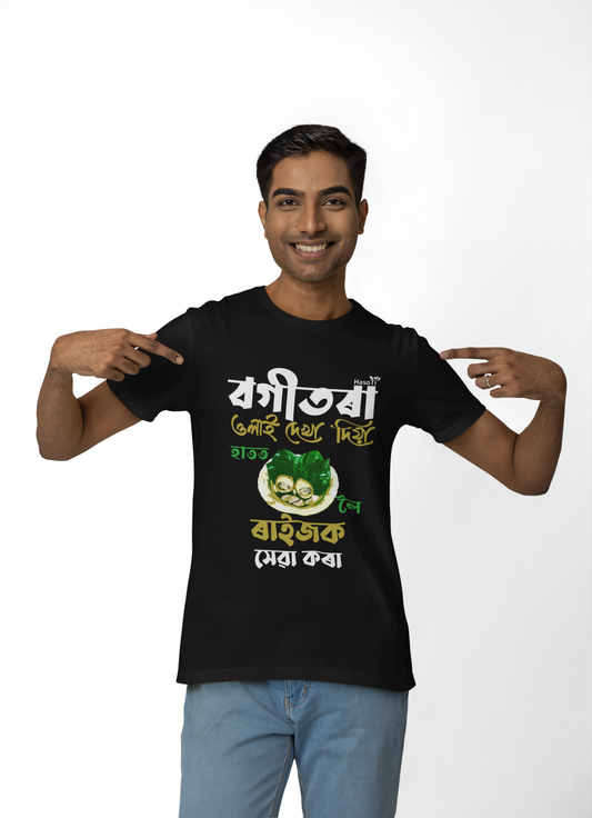Bogitora Ulai Dekha Diya | Assamese graphic printed t shirt | Regular | Black | Men