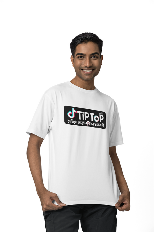 Tiptop Dekhile | Assamese graphic printed t shirt | Regular | White | Men
